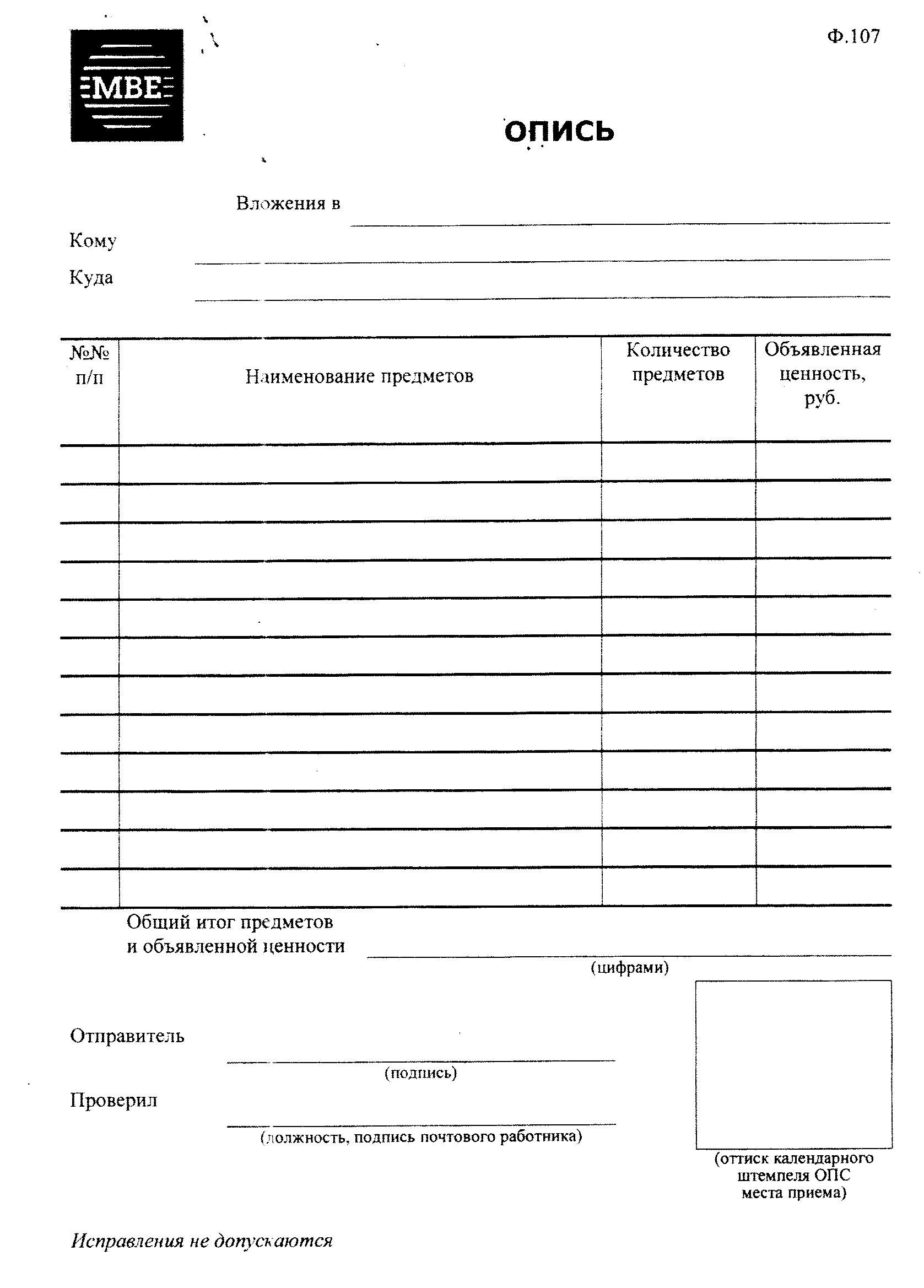 Образец реестра для физического лица (отправка груза в Казахстан) СКАЧАТЬ